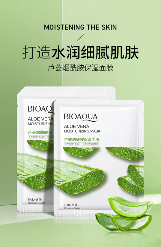 عصاره آلوئه ورا حاوی ویتامین های A, C, E, B12 است از این رو گستره وسیعی از نیاز های پوست شما را برطرف ساخته و نیاز های پوست شما را تامین می کند. خاصیت جوانسازی، آنتی اکسیدان، سفید کنندگی ، لیفت، نرم کنندگی و… از جمله خواص مفید این ویتامین ها برای پوست شما است. با استفاده از ماسک ورقه ای بازسازی کننده آلوئه ورا بیوآکوا می توانید پوستی جوان و نرم و مرطوب داشته باشید و آسیب های وارده به پوستتان را درمان کنید و همچنین نیاز آن به رطوبت و مواد موغذی را برطرف سازید.