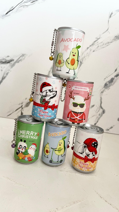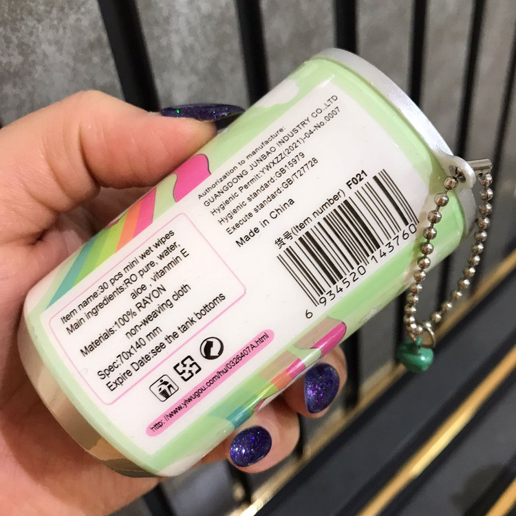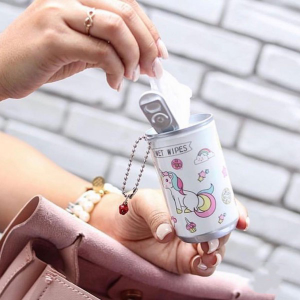 یک زنجیر کوچک نیز به همراه دستمال مرطوب وجود دارد که می توان آن را به قوطی دستمال وصل کرد و به عنوان آویز از آن استفاده کرد.