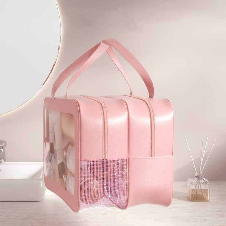 این مدل از واش بگ مسافرتی ضد آب مدل دو زیپ سایز متوسط | رنگ صورتی دارای دوتا زیپ و دوتا قسمت جدا هست که میتونین وسایلتون رو داخلش بذارید و بخاطر ضد آب بودنش کافیه با آب اونو بشوئید و با دستمال اونو خشک کنید تا حسابی تمیز شه.