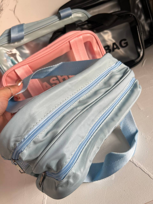 کیف واش بگ آرایشی و بهداشتی دو زیپ رنگ آبی ضدآب اورجینال washbag