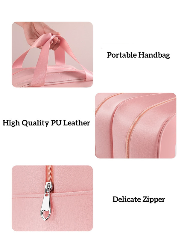 این مدل از واش بگ مسافرتی ضد آب مدل دو زیپ سایز متوسط | رنگ صورتی دارای دوتا زیپ و دوتا قسمت جدا هست که میتونین وسایلتون رو داخلش بذارید و بخاطر ضد آب بودنش کافیه با آب اونو بشوئید و با دستمال اونو خشک کنید تا حسابی تمیز شه.