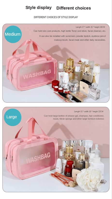 واش بگ مسافرتی ضد آب مدل دو زیپ سایز متوسط و بزرگ