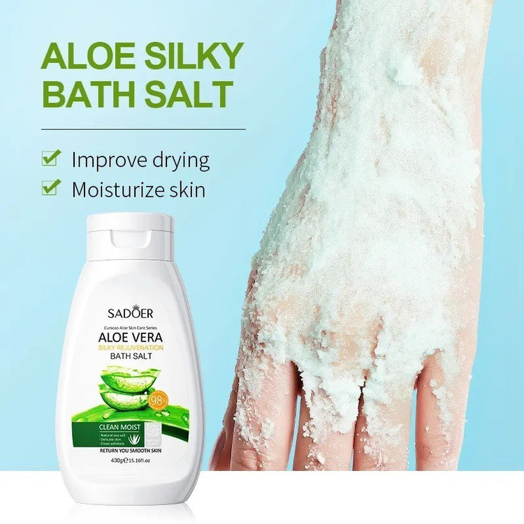 نمک حمام بدن آلوئه ورا سادور با عصاره آلوئهورا ساخته شده است و بهطور ویژه برای رفع تیرگی نواحی زیر بغل، کشاله ران و سایر نقاط حساس بدن موثر است. این محصول ضمن خاصیت آبرسانی، به تسکین و آرامش پوست کمک میکند و سلولهای مرده را از بین میبرد.