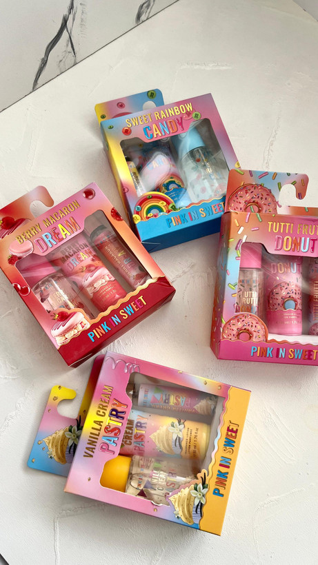 پک هدیه ست بادی اسپلش لوسیون خالخالی pink in sweet یه بسته فوق العاده زیبا و مخصوص هدیه دادن این پک حاوی سه محصول پرطرفدار: