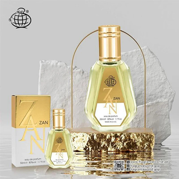 ادکلن زنانه ۵۰ میل برند فراگرنس (Fragrance World) که معمولاً با نام "زان" (Zan) شناخته میشود، یک عطر شرکتی است که از ادکلن شیسیدو زن (Shiseido Zen) الهام گرفته شده است. این عطر دارای رایحهای شیرین و معتدل است و برای استفاده در تمام فصول سال مناسب است .